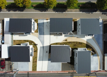 屋根は片流れとし、ランダムな方向に住戸と配置することで同じ形の建売住宅が並ぶのとは異なる都市のような景観を生み出すことを意識しました。