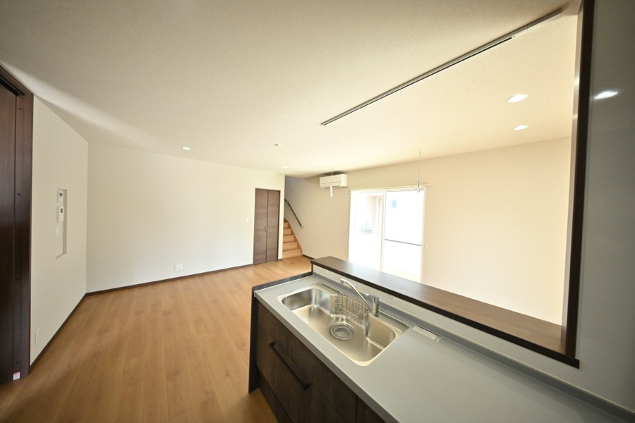 リビングの開口部は外から出入りできるようにし、将来的にここでお店などをされる場合のお店の玄関になったり、屋内を出入りしながら、プライベートな食事会を楽しむときに役立ちます。